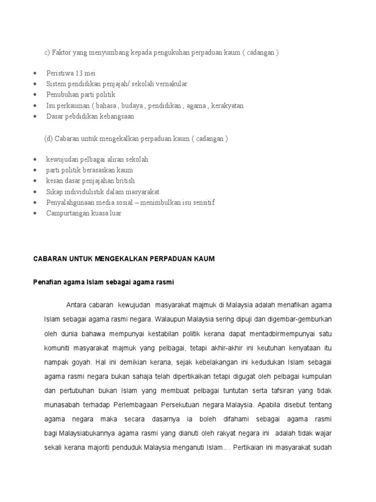 Contoh karangan kepentingan perpaduan kaum di malaysia. Langkah langkah untuk mengekal dan .